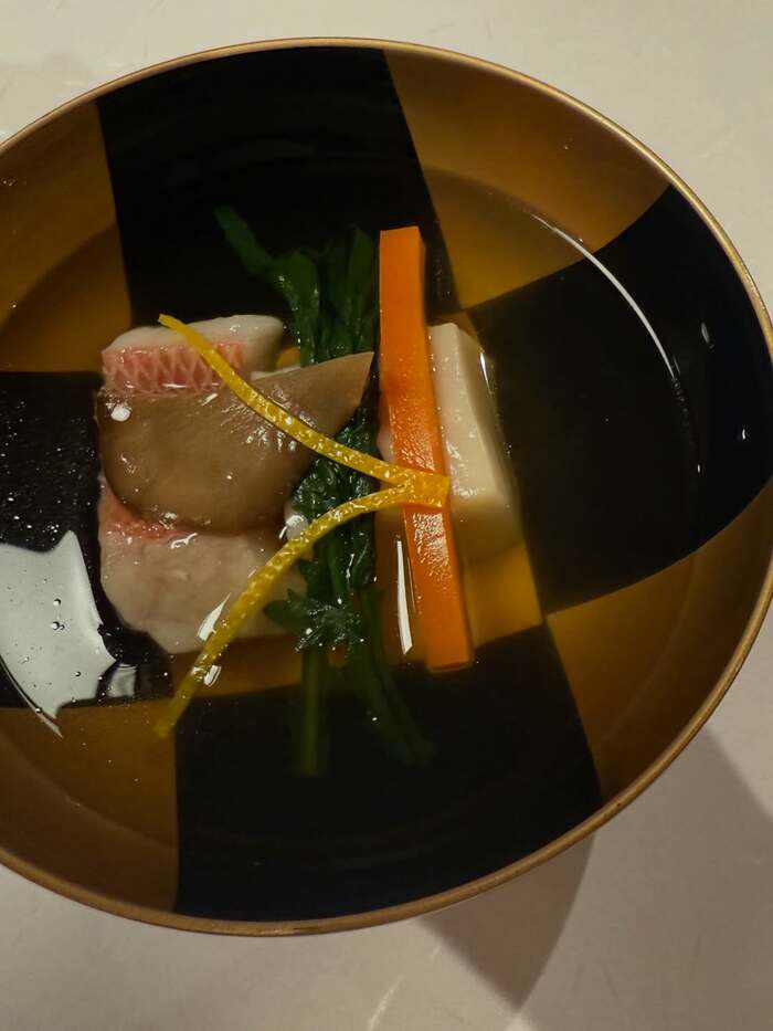 まずは、おでんから。小皿には、大根、こんぶ、煮卵、こんにゃく、はんぺん、練り物がよそわれています。