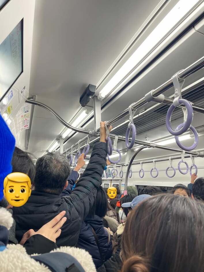 車内の様子を写したショットでは、見渡す限り人で埋め尽くされていて、超満員!とても混雑しているようで、京王2000系の人気ぶりがうかがえます。