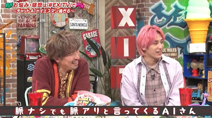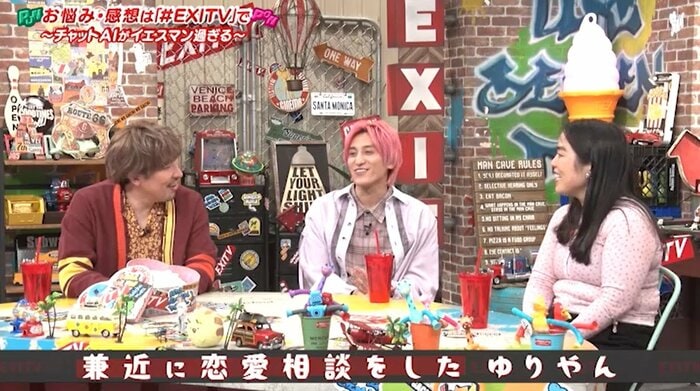 EXIT(りんたろー。さん、兼近大樹さん)がゲストとリラックスしたトークを繰り広げる『EXITV』(フジテレビ)。2月3日の放送回では、ゲストにゆりやんレトリィバァさんを迎えて、チャットAIへの恋愛相談トークで盛り上がりました。