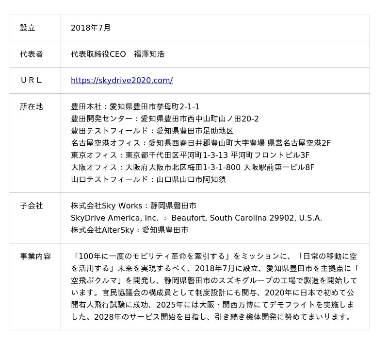 ≪株式会社SkyDrive 概要≫