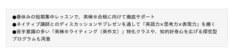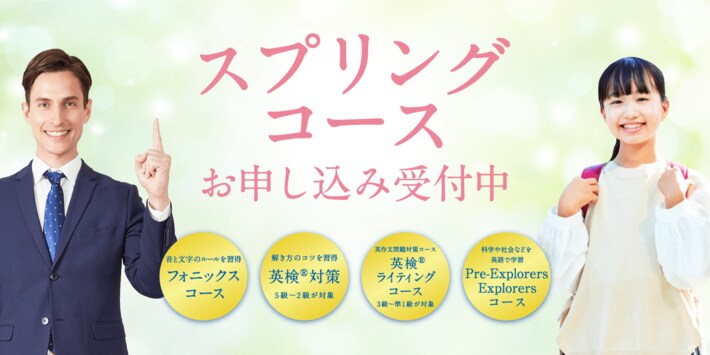 2026年のスプリングコースでは、次年度の英検(R)合格を見据えた「英検(R)対策」や、論理的な構成力を養う「英検(R)ライティングワークショップ」、知的好奇心を刺激するオリジナルプログラム「Explorersコース」などを中心とした、春季限定レッスンを開講します。