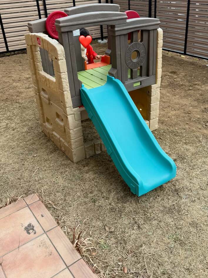 また、今回の投稿では「遊具が新たに追加されました ぷくぷく大喜び」とつづり、お庭のスペースを有効に使った新たな遊具が登場しています。
