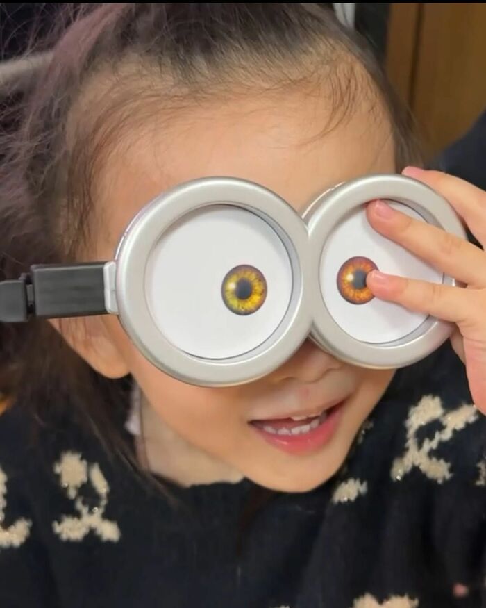 そして、ミニオンのおもちゃのゴーグルを目元に当てほほ笑む3歳の娘や…
