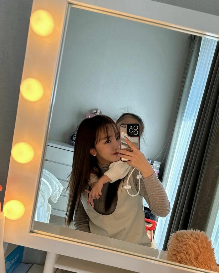 さらに、白いドレッサーの前に座る板野さんに娘が後ろから抱きついているような親子仲良しショットに…