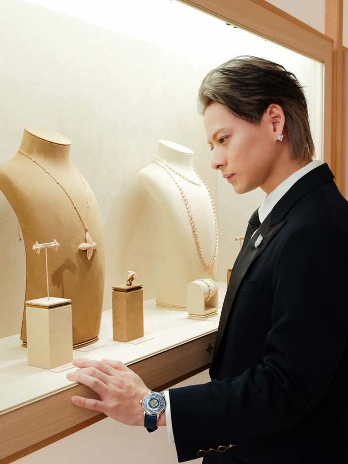 高級感漂うジュエリーを眺めている姿は、まるで物語から抜け出してきた王子様のよう。気品にあふれたたたずまいは、思わずうっとり見とれてしまいます。