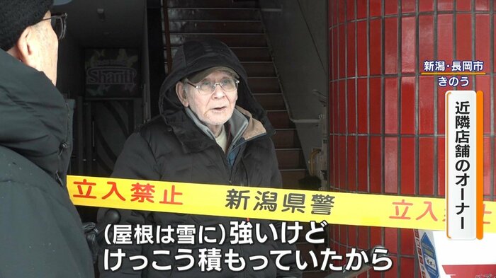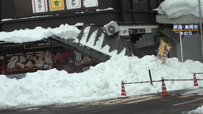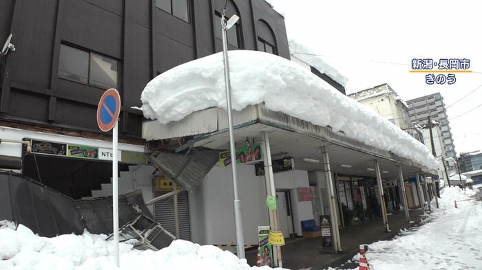 さらに、同じく長岡市内の繁華街の防犯カメラには、アーケードの屋根が、雪と共に崩れ落ちる瞬間が映っていました。