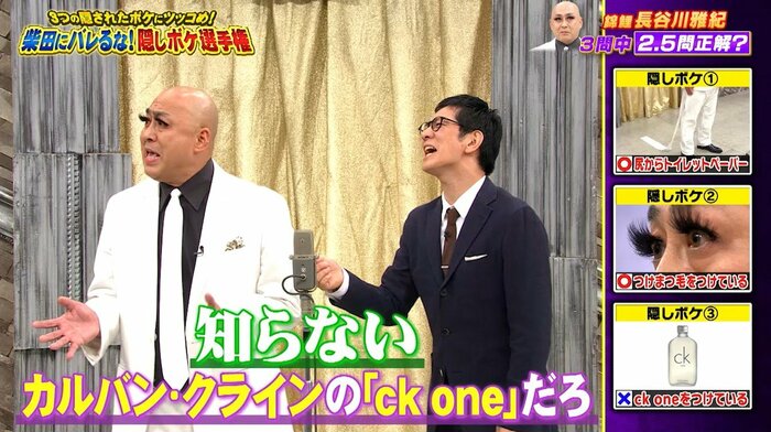 長谷川さんは「(香水の)銘柄まで当ててほしかった」と「3分の2.5」正解を主張しましたが、キャスターアリタの判断で、3個正解となりました。