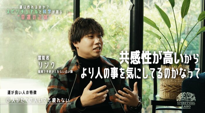 動画は「運は作れるのか? スピリチュアルと科学が語る“幸運の正体” #1 運の定義」と題して、宝くじを当てたい、ライブのチケットを獲得したいといった、誰もが気になる自分の“運”を上げるための参考になるトピックを語り合います。