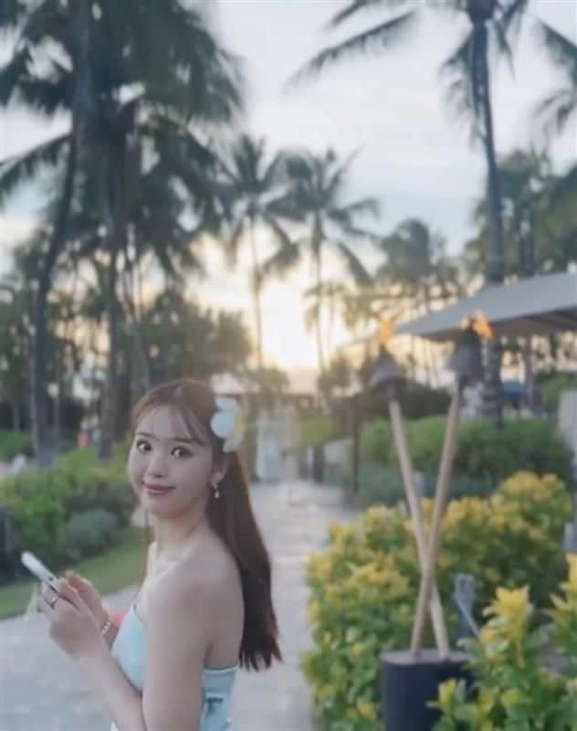 また、稲葉さんが撮影したのでしょうか。白のハイビスカスを髪に付けて振り返り、笑顔を見せる動画も投稿!
