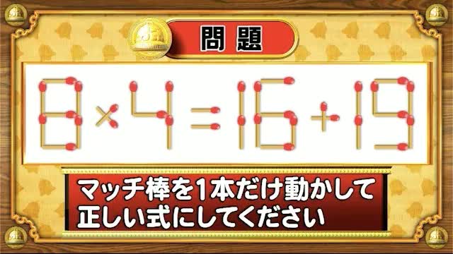 最初は、マッチ棒問題。次の式のマッチ棒を1本だけ動かして正しい式にしてください。