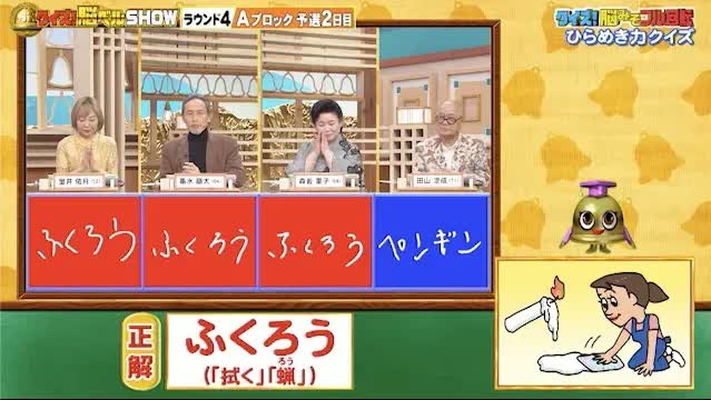 正解は「ふくろう(拭く+ろう)」。室井さん、垂水さん、森若さんが正解!