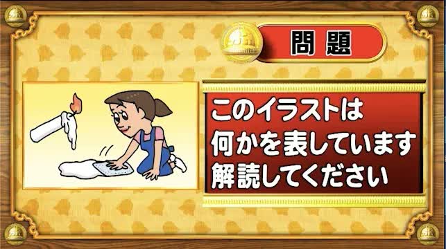 次は、イラスト暗号の問題。次のイラストが表しているものを解読してください。