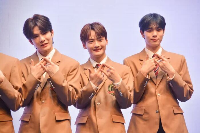 初のお披露目となったステージに登壇したDXTEENは、緊張しながらも笑顔でフォトセッションに対応し、順番に元気に自己紹介を行いました。