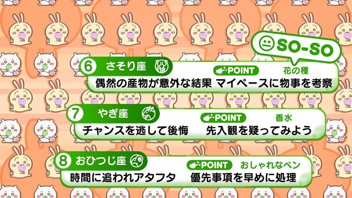 『めざましテレビ』で放送中の「ちいかわ占い」 テレビ放送がない日はお休みで、月~土:朝7時以降に更新予定です。