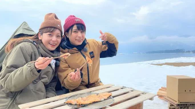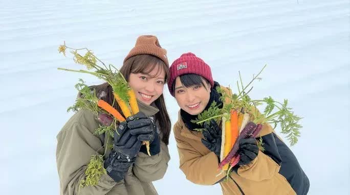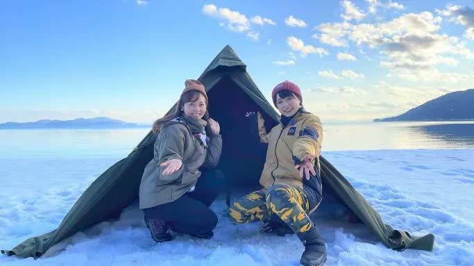 さらに雪の下から掘り起こした、甘~い“カラフル人参”をゲットし、琵琶湖のほとりでキャンプ