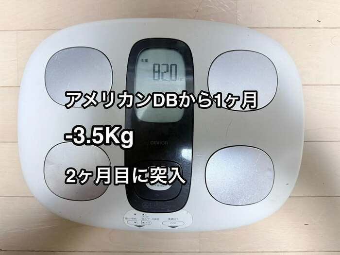 ダイエット開始から約1ヵ月後の5月12日には、体重が82キロと、マイナス3.5キロの減量に成功。