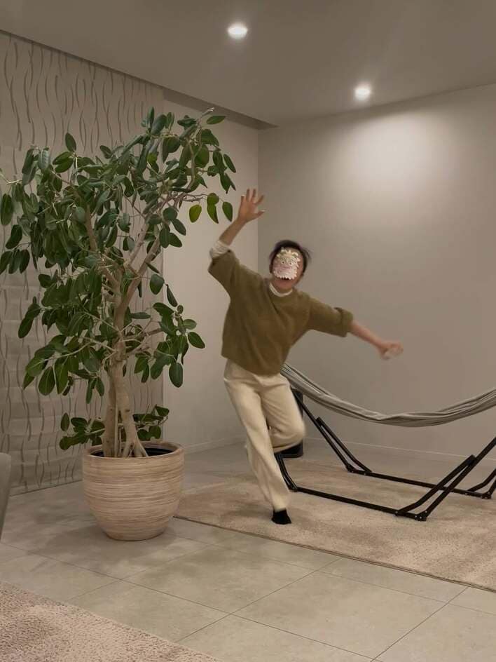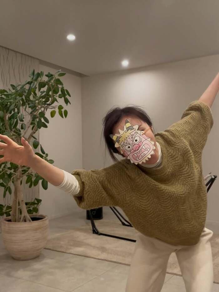 そして「一年に一度の大役を 今年も全力でやらせて頂きました」とつづり、天井ほどの高さのある植物やハンモックが飾られた広々としたモダンな部屋で、鬼のお面をつけた姿を披露。山口さんは、片手を思いっきり上げ、「待て~!捕まえるぞ~!」と言うように、完全に鬼になりきっています。
