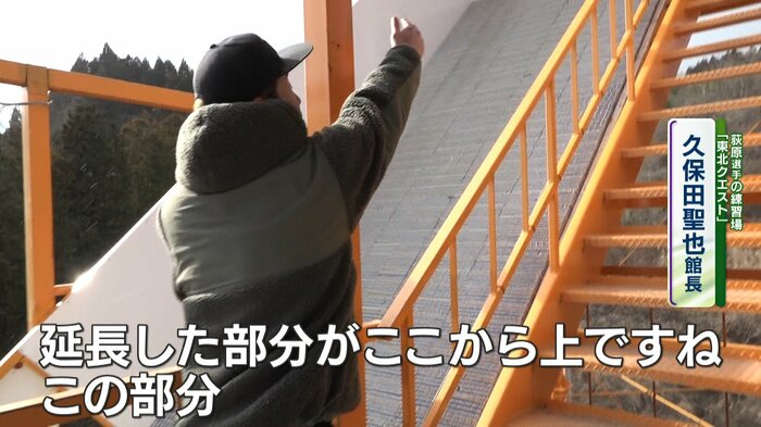 前までは今立っているこの場所、ここからドロップしてたんですけど。延長した部分がここから上ですねこの部分。(荻原選手が)練習しやすいようにするために伸ばした。