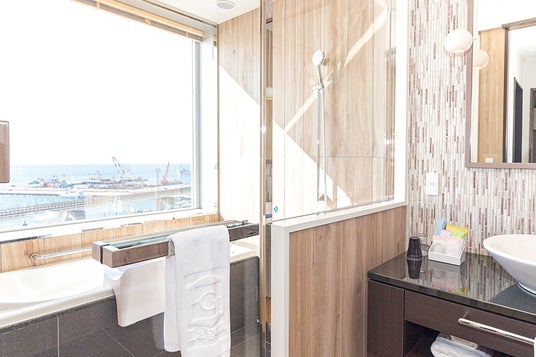 最上階からの眺めは抜群、展望バスルームからは函館港を見渡せます!