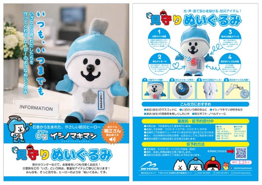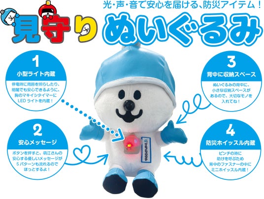 震災から15年。石巻の勇気を集めたヒーロー『イシノマキマン』に見守りぬいぐるみが新登場!!光・声・音で安心を届ける新しい防災グッズ。お子様へのギフトや店舗の受付に。いつも、いつまでも私達を見守ります。