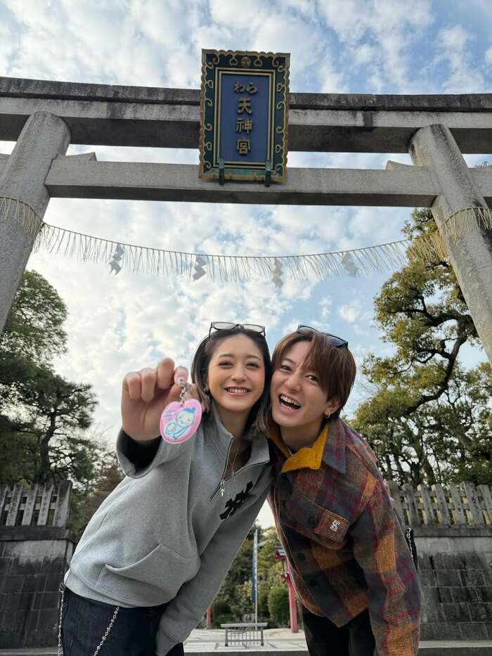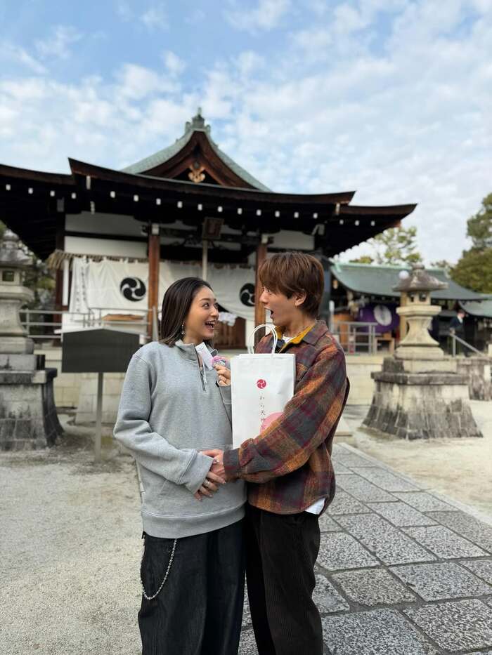 今回の投稿では「この度、僕たち家族のもとに新しい命を授かりました。」と報告し、安産祈願で知られる神社「わら天神宮」を訪れた際に撮影した、池田さんとの写真を公開しました。