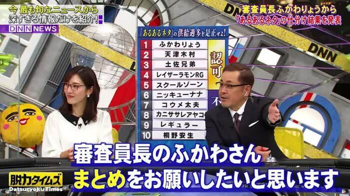 最後は、「『あるあるネタ審議委員会』審査委員長・ふかわりょう」として、結果発表をすることに。