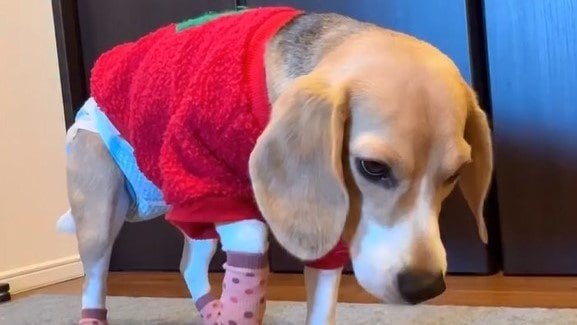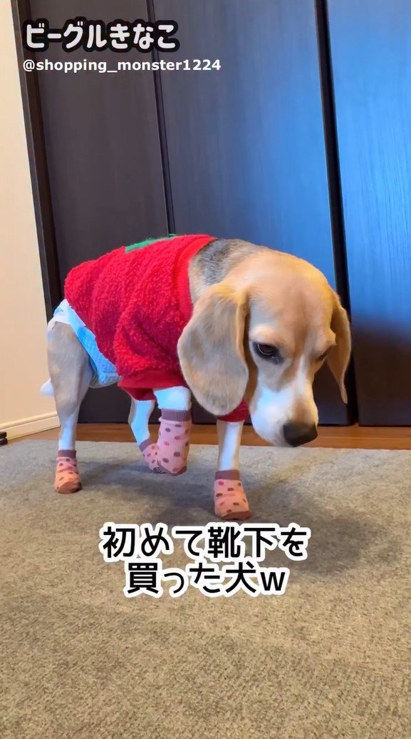 この日、初めて犬用の靴下を履いたというわんちゃんの様子がSNSに投稿されると、まさかのリアクションにポテンシャルがすごい」「体操選手みたい」「笑っちゃいました」「リピートしちゃってます」などと、その姿にとりこになる人が続出。
