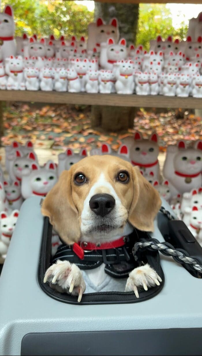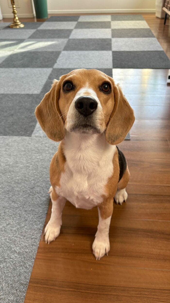 ぱっちりおめめを見開いて、こちらを見上げているのは、2歳のビーグル「きなこちゃん」。