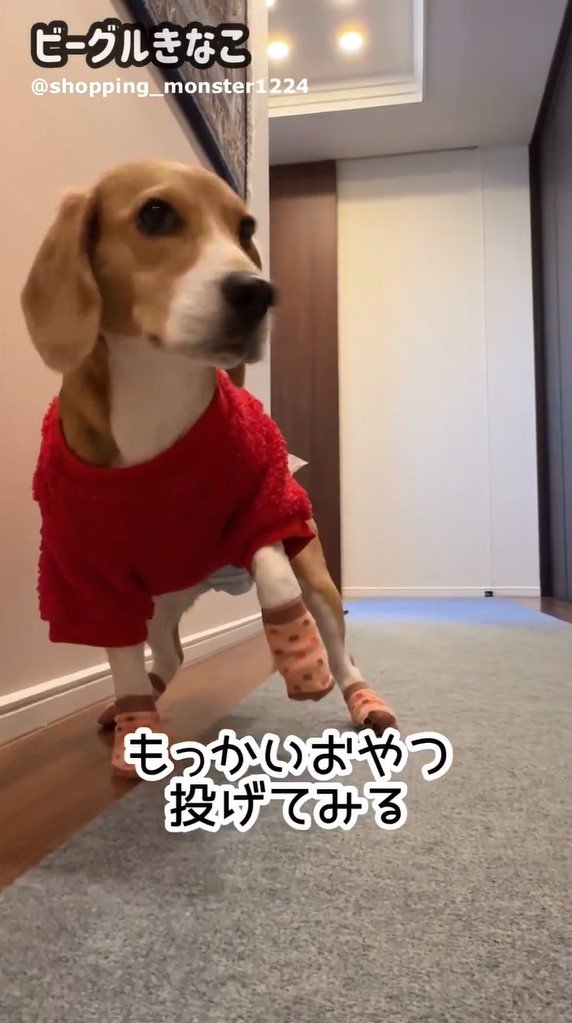 そこで、飼い主さんがもう一度おやつを投げてみると…