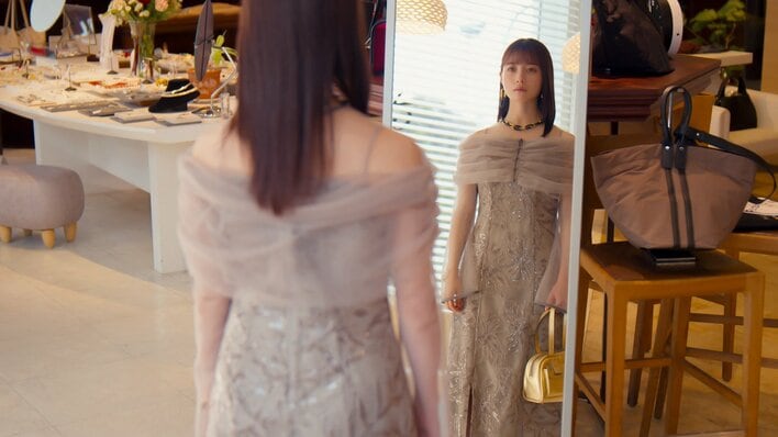 いつものガルフィコーデで参加しようとする湖音波にあきれた沙羅は、湖音波をセレクトショップに連れて行き、TPOに合わせたドレスをコーディネート。