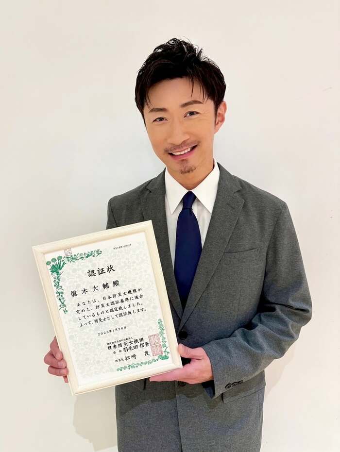 MAKIDAIさんは「初資格 この度防災士になりました」とつづり、近況ショットを公開。