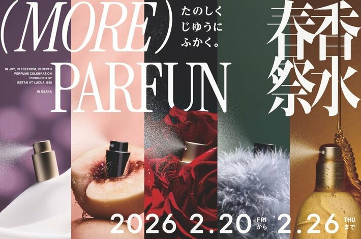 ルクア大阪内 イセタン各ショップでは、2月20日(金)から26日(木)の期間、 香水についての「もっと」を満たすイベント「モアパルファン」を開催。約10ブランドの香水が揃います。
