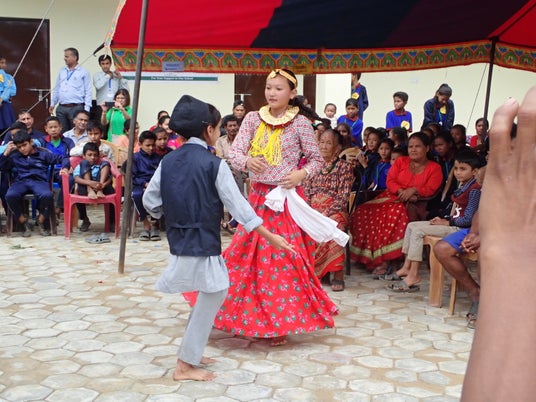 民族衣装を着てダンスをするネパールの子どもたち