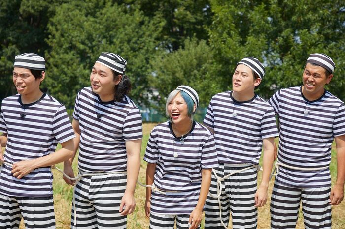 「チェインギャング」とは…囚人のグループを鎖でつないで下働きさせる労働システムのこと。その名の通り、ひもでひとくくりにされた芸人たちが「団体芸」で人々を笑わせる、新ジャンルのバラエティ『お笑いチェインギャング』が放送されます。