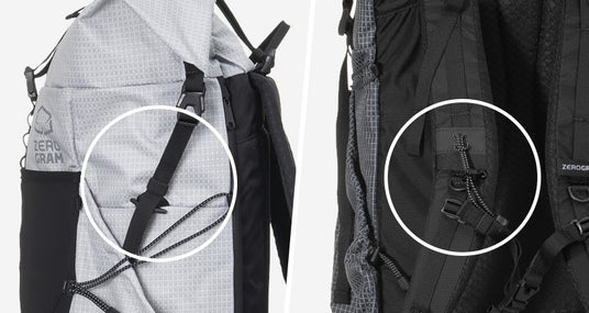 特に、両サイドポケットは非常に深く、30Lではフォールディングチェア、50Lでは1pテントやスリーピングパッドが丸ごと、収納できるほど。深さがあっても背負ったままウオーターボトルを出し入れできる設計、長さがあるギアをしっかり固定できる二重バンドなど、ポケットの利便性を高めます。