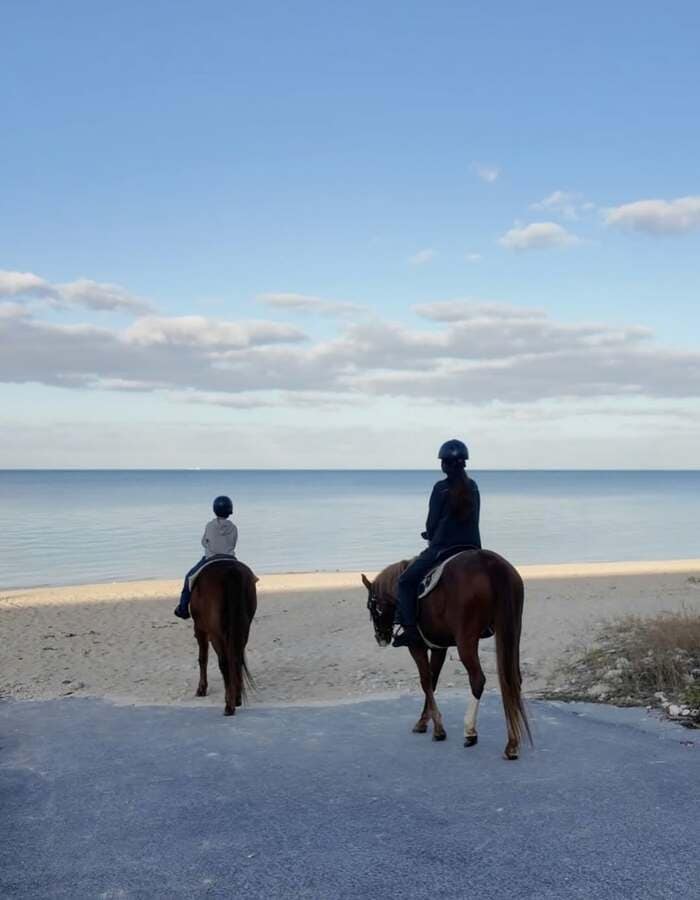 さらに、海辺で息子と一緒に乗馬をしているショットも!2人はヘルメットをかぶり、それぞれ馬に乗っていて、前かがみで馬を見つめてコミュニケーションをとるヨンアさんを、息子はじっと観察するように見つめています。