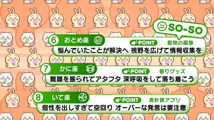 『めざましテレビ』で放送中の「ちいかわ占い」 テレビ放送がない日はお休みで、月~土:朝7時以降に更新予定です。