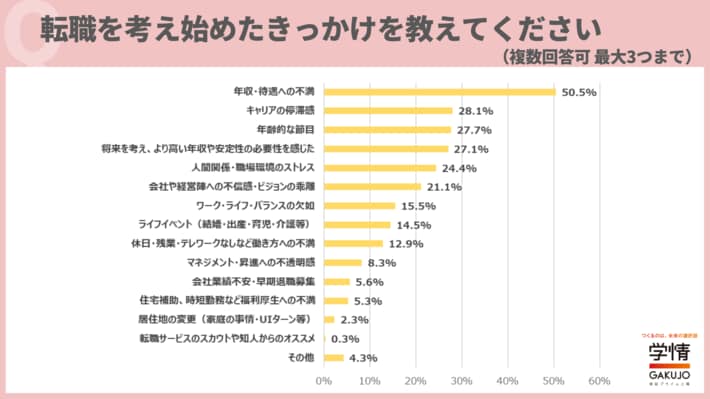 (1)半数が「年収・待遇への不満」きっかけに転職考える 次いで「キャリアの停滞感」「年齢的な節目」