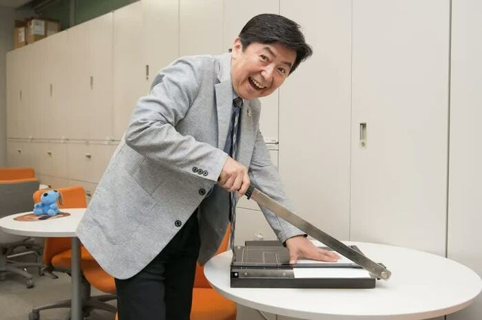 アナウンサー・笠井信輔を語る上で欠かせないもの、それはアナウンス室の“裁断機”。