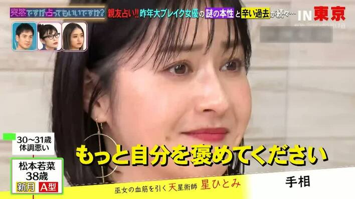 星さんは続けて「2022年5・6・7月、よく乗り越えた。別の人格みたい。自分じゃなかったと思う」と鑑定し、松本さんは「あ〜」と、納得の様子。