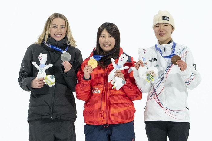 一方、表彰式には髪を下ろした姿で登場し、競技中とはまたちがった雰囲気に。