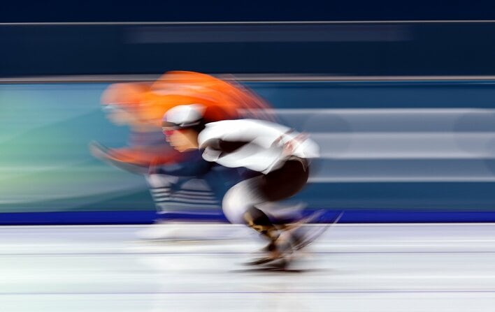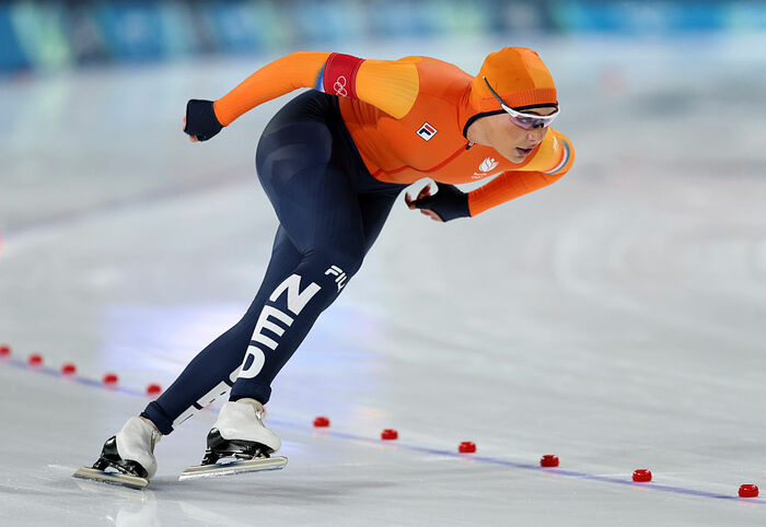最終組に滑走する高木選手。直前の組では、オランダのフェムケ・コック選手(25)がオリンピックレコードを更新。隣のレーンには前回大会銀メダリストの、オランダ、ユタ・レールダム選手(27)が並び、緊張感の高まる中でレースがスタートします。