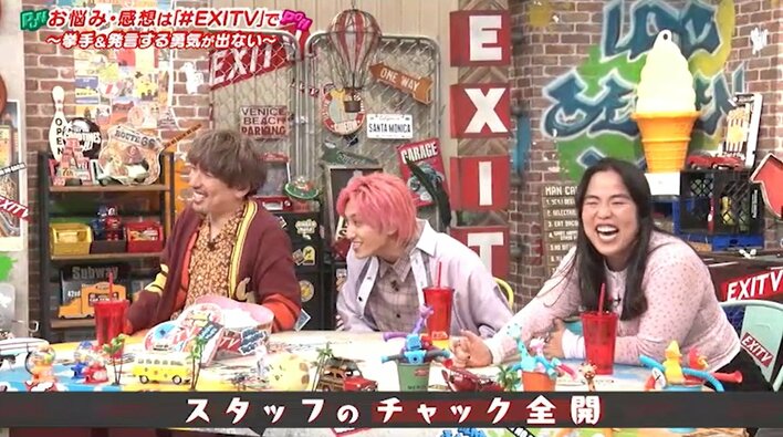 EXIT(りんたろー。さん、兼近大樹さん)がゲストとリラックスしたトークを繰り広げる『EXITV』(フジテレビ)。2月10日の放送回では、ゲストにゆりやんレトリィバァさんを迎えて、緊張のほぐし方トークで盛り上がりました。