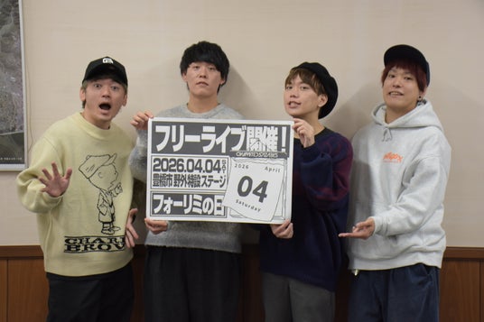 4月4日の「フォーリミの日」に初となる野外フリーライブを行う、ロックバンド「04 Limited Sazabys(フォーリミテッドサザビーズ)」が2026年1月28日(水)、開催地である豊橋市の市役所を訪れ、長坂尚登市長にライブ開催を報告しました。