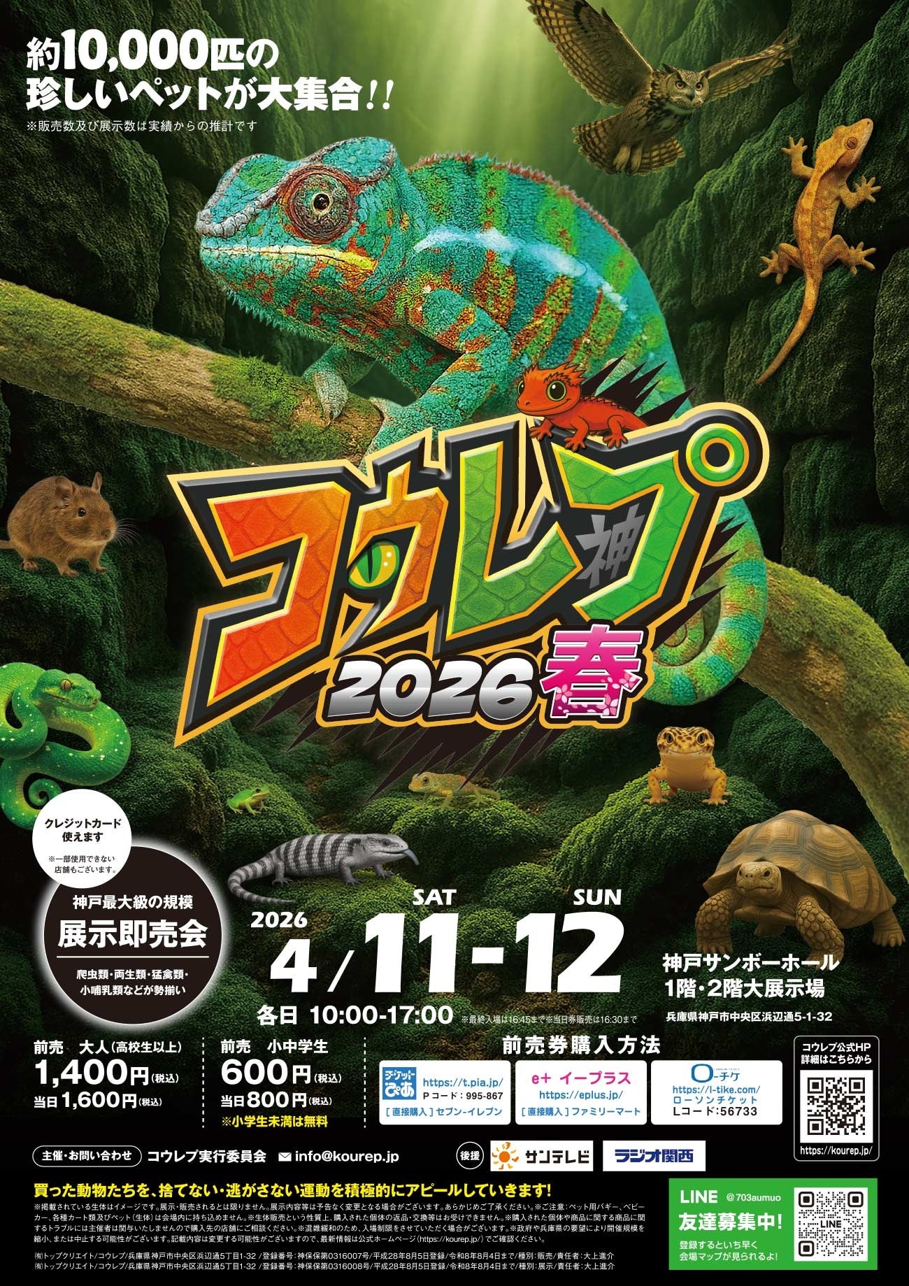 神戸最大級の爬虫類イベント「コウレプ2026春」が、2026年4月11日(土)・12日(日)の2日間、神戸サンボーホールにて開催されます。