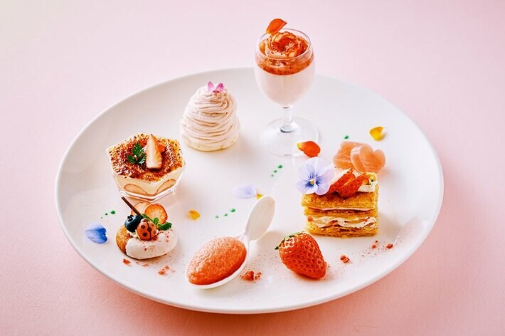 本フェアでは、見た目・味・香りの3拍子が揃った理想的ないちごとも称される「ベリーツ」を主役に、趣向を凝らした和洋のスイーツを一皿で堪能できるスイーツプレートをはじめ、パフェ、ケーキなど、全5種類のスイーツが登場します。果実本来の甘酸っぱさと芳醇な香りを生かし、それぞれの素材が持つ異なる食感も楽しめる、春限定の華やかなラインアップです。