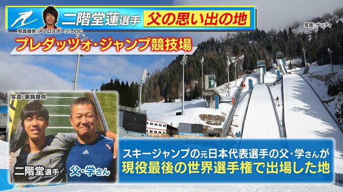 二階堂選手がジャンプをはじめたのは、小学2年生の時。元日本代表ジャンパーで憧れの存在だった、父・学さんの影響でした。