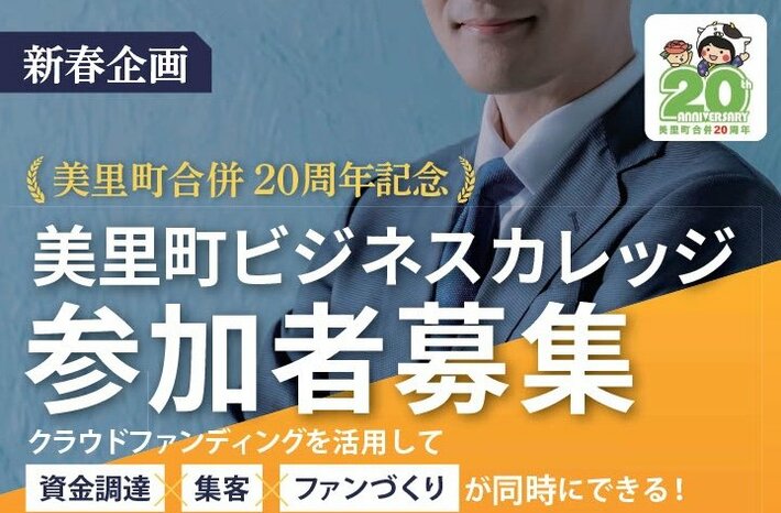 今回開催する「美里町ビジネスカレッジ」は、美里町合併20周年記念事業の一環として実施されるもので、「美里町のこれからの20年間」をテーマに、町内在住または町内勤務の50歳以下の方を対象に募集します。
