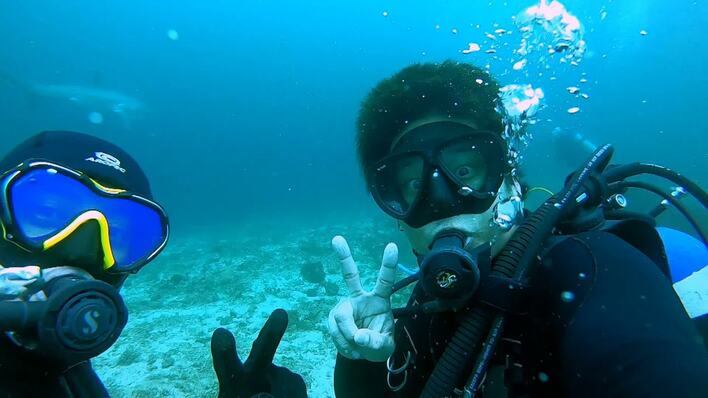 2人がダイブに挑戦できるのは、わずか3回。はたして、ニタリを探しだし、自撮りツーショットを撮影することはできるのでしょうか。