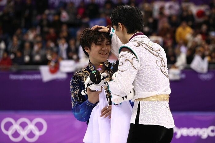 この時の表彰台では、当時銀メダルを獲得した宇野昌磨さんの頭に手を添えて勝利を分かち合う場面も。仲間への心遣いもステキです。
